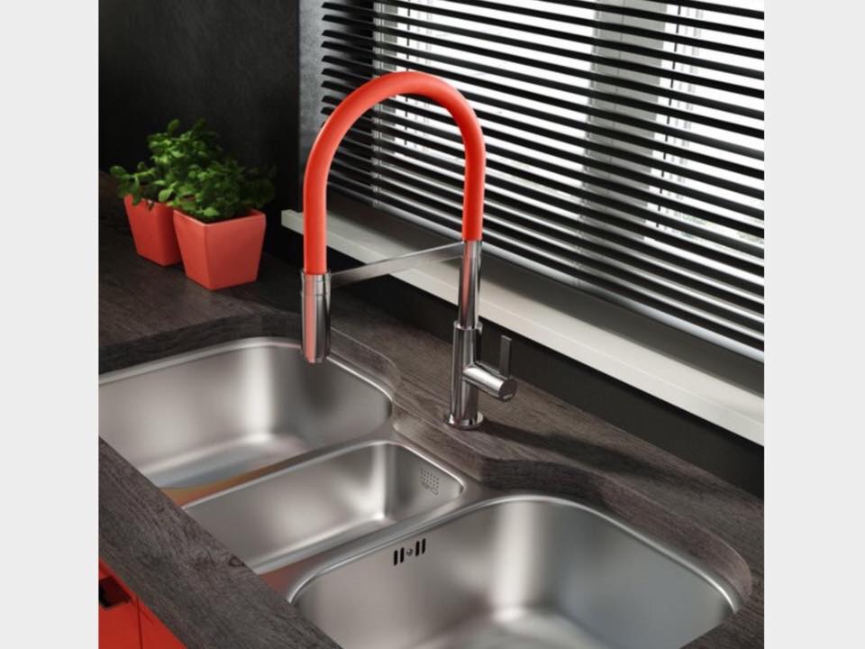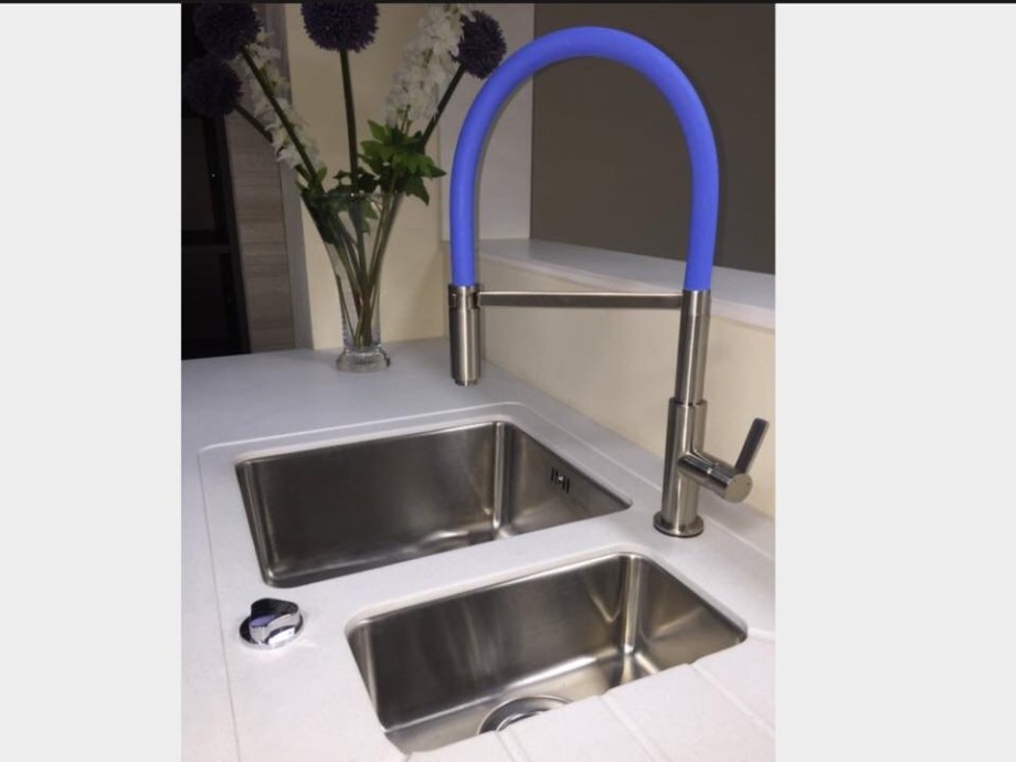 Check out this cheeky tap, the Spirale flexible spout in either Chrome or Brushed Steel finish, comes with a hose of your choice in an array of colours, Anthracite, Black, Chocolate, Green, Latte, Light Grey, Mid Blue, Orange, Red, White, Wine & Yellow! Easy to change over & add some flavour to your kitchen sink!